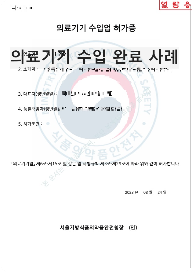 의료기기 수입을 처음 진행하셨기에 의료기기 수입업 허가도 필요했으며 기술문서 작성이 어려워 저에게 업무 대행을 의뢰하셨습니다.