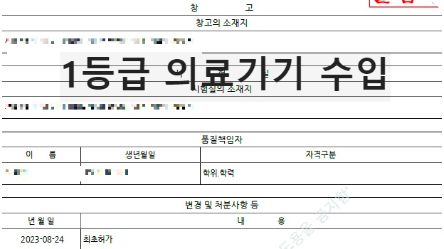 이상으로 1등급 의료기기 수입신고 완료 사례를 말씀드렸습니다.